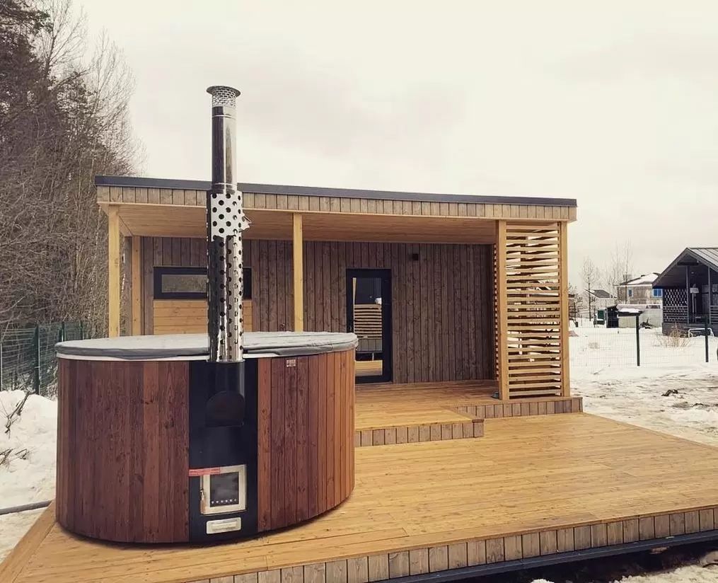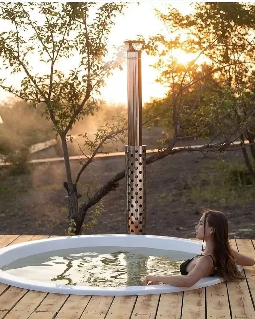 Купельді далада кез келген ауа райы кезінде де пайдалануға болады. Тоттанбайтын болаттан жасалған, купель ішіне кіріктірілген пеш суды ыңғайлы температураға дейін тез жылытады. Пеш есігінде оратылған қызуға берік шыны арқылы сіх оттың әдемі жанғанын байқай аласыз. Түтіндік тоттанбайтын болаттан жасалған арнайы экранмен қорғалған, сондықтан күйіп қалу мүмкіндігі тіпті болмайды. Пеш эстетикалық түрінде купельге кіріктірілген, ал барлық коммуникациялар құрылма ішінде ұқыпты жасырылған.